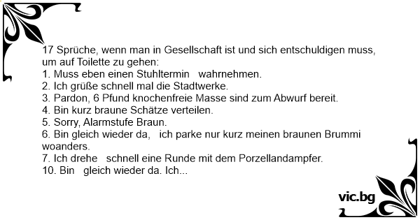 12. Entschuldigen sie mich, ich gehe exkrementieren.