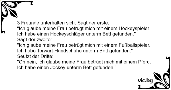 "Ich glaube meine Frau betrügt mich mit einem Fußballspieler. Ich habe Torwart-Handschuhe unterm Bett gefunden."
