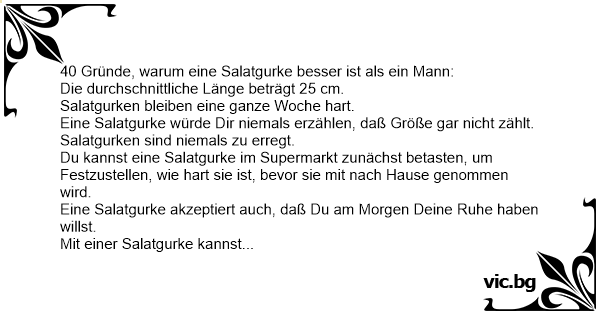 40 Gründe, warum eine Salatgurke besser ist als ein Mann: