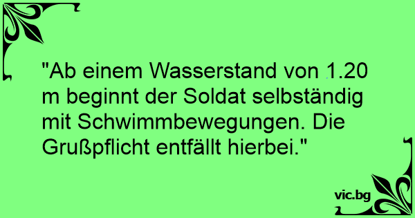 "Ab einem Wasserstand von 1.20 m beginnt der Soldat selbständig mit Schwimmbewegungen. Die Grußpflicht entfällt hierbei."