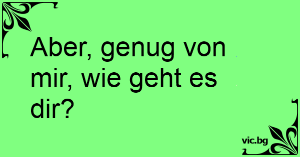Aber, genug von mir, wie geht es dir?