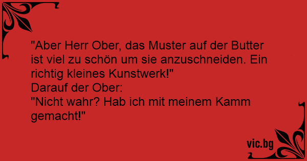 "Aber Herr Ober, das Muster auf der Butter ist viel zu schön um sie anzuschneiden. Ein richtig kleines Kunstwerk!"