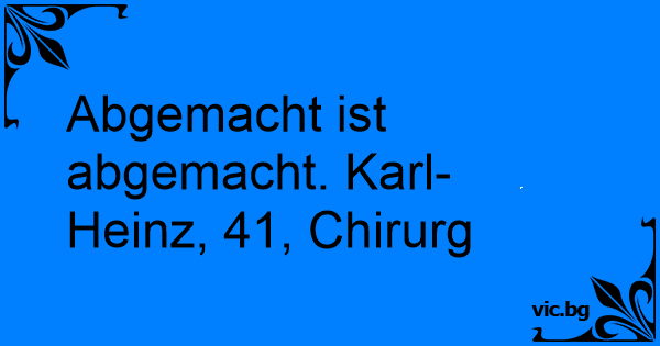 Abgemacht ist abgemacht. Karl-Heinz, 41, Chirurg
