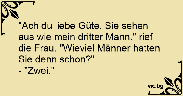 "Ach du liebe Güte, Sie sehen aus wie mein dritter Mann." rief die Frau. "Wieviel Männer hatten Sie denn schon?"