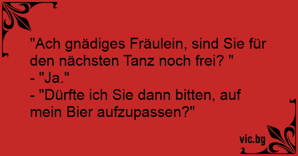 "Sind Sie für den nächsten Tanz schon vergeben?" "Oh nein, ich bin noch frei!" "Könnten Sie dann bitte mein Bierglas halten?"