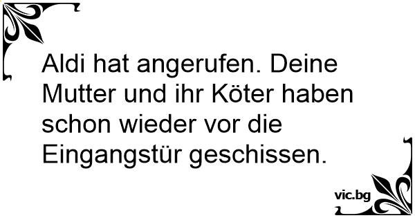 Aldi hat angerufen. Deine Mutter und ihr Köter haben schon wieder vor die Eingangstür geschissen.
