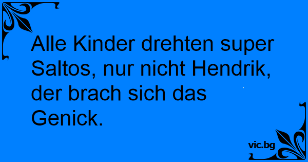 Alle Kinder drehten super Saltos, nur niсhт Hendrik, der brach sich das Genick.