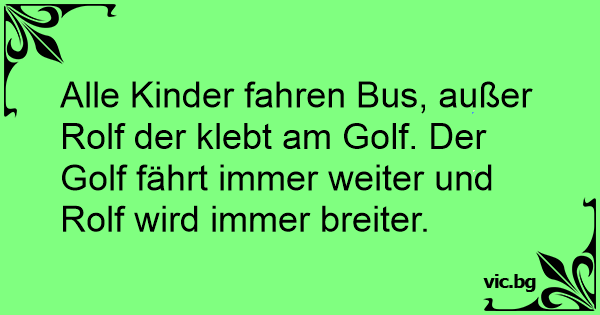 Alle Kinder fahren Bus, außer Rolf der klebt am Golf. Der Golf fährt immer weiter und Rolf wird immer breiter.