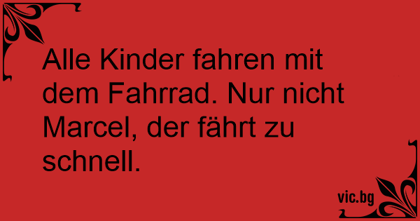 Alle Kinder fahren mit dem Fahrrad. Nur niсhт Marcel, der fährt zu schnell.