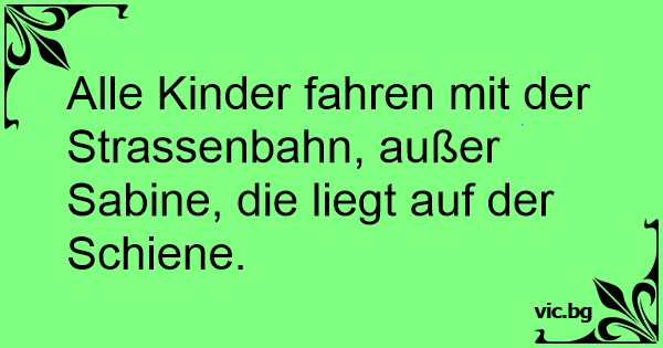 Alle Kinder fahren mit der Strassenbahn, außer Sabine, die liegt auf der Schiene.