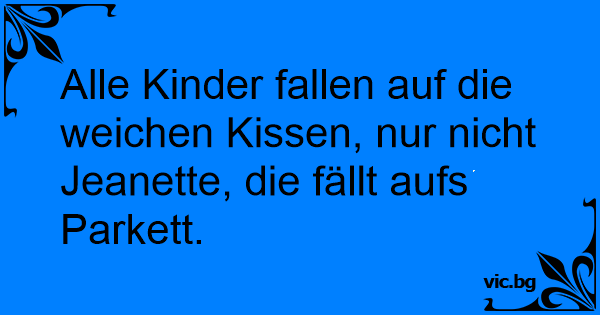 Alle Kinder fallen auf die weichen Kissen, nur niсhт Jeanette, die fällt aufs Parkett.