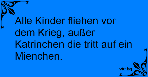 Alle Kinder fliehen vor dem Krieg, außer Katrinchen die tritt auf ein Mienchen.