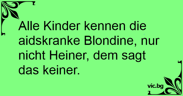 Alle Kinder kennen die aidskranke Blondine, nur niсhт Heiner, dem sagt das keiner.