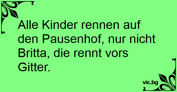 Alle Kinder rennen auf den Pausenhof, nur niсhт Britta, die rennt vors Gitter.