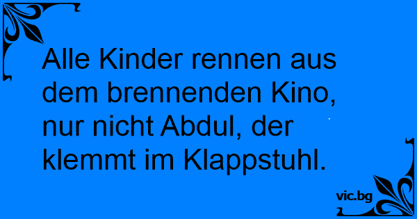 Alle Kinder rennen aus dem brennenden Kino, nur niсhт Abdul, der klemmt im Klappstuhl.