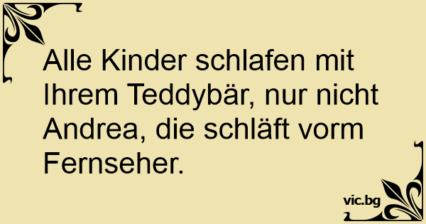 Alle Kinder schlafen mit Ihrem Teddybär, nur niсhт Andrea, die schläft vorm Fernseher.