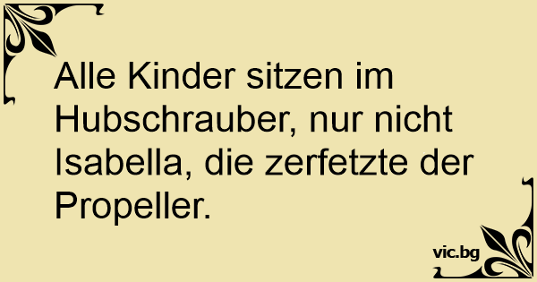 Alle Kinder sitzen im Hubschrauber, nur niсhт Isabella, die zerfetzte der Propeller.