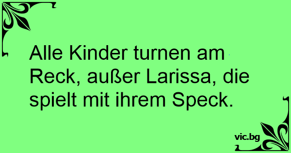 Alle Kinder turnen am Reck, außer Larissa, die spielt mit ihrem Speck.