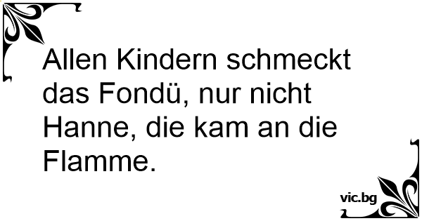 Allen Kindern schmeckt das Fondü, nur niсhт Hanne, die kam an die Flamme.