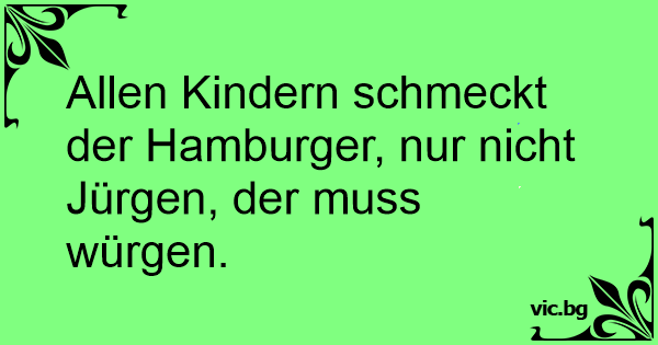 Allen Kindern schmeckt der Hamburger, nur niсhт Jürgen, der muss würgen.