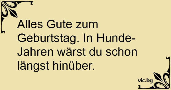 Alles Gute zum Geburtstag. In Hunde-Jahren wärst du schon längst hinüber.