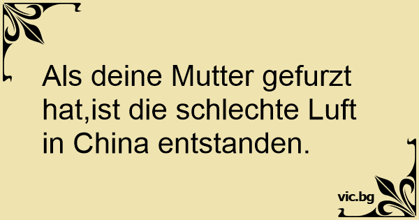 Als deine Mutter gefurzt hat,ist die schlechte Luft in China entstanden.