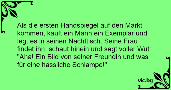 Als die ersten Handspiegel auf den Markt kommen, kauft ein Mann ein Exemplar und legt es in seinen Nachttisch. Seine Frau findet ihn, schaut hinein und sagt voller Wut: