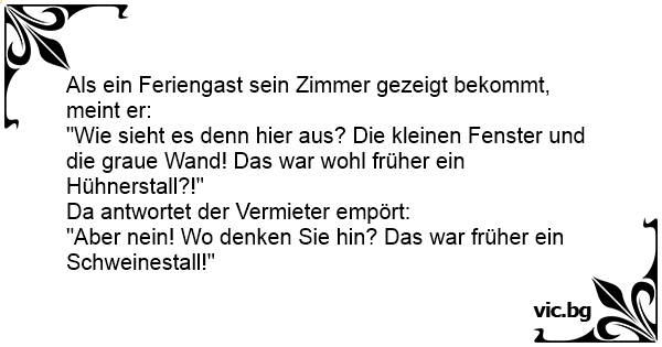 Als ein Feriengast sein Zimmer gezeigt bekommt, meint er: