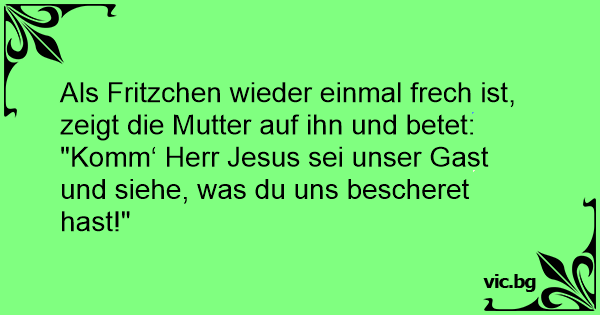 Als Fritzchen wieder einmal frech ist, zeigt die Mutter auf ihn und betet: