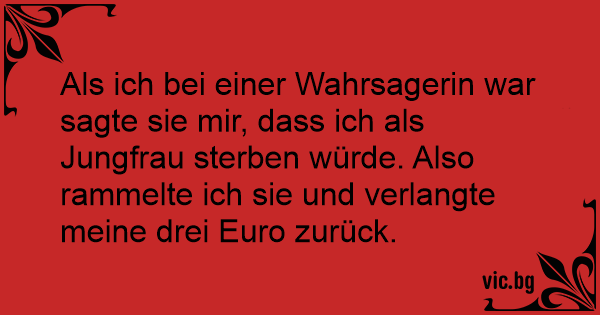 Als ich bei einer Wahrsagerin war sagte sie mir, dass ich als Jungfrau sterben würde. Also rammelte ich sie und verlangte meine drei Euro zurück.