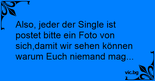 Also, jeder der Single ist postet bitte ein Foto von sich,damit wir sehen können warum Euch niemand mag...