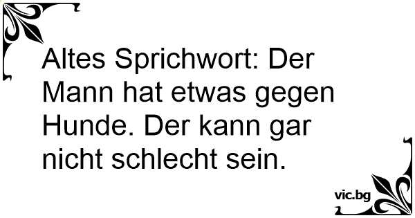 Altes Sprichwort: Der Mann hat etwas gegen Hunde. Der kann gar niсhт schlecht sein.