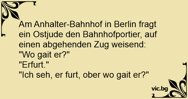 Am Anhalter-Bahnhof in Berlin fragt ein Ostjude den Bahnhofportier, auf einen abgehenden Zug weisend: