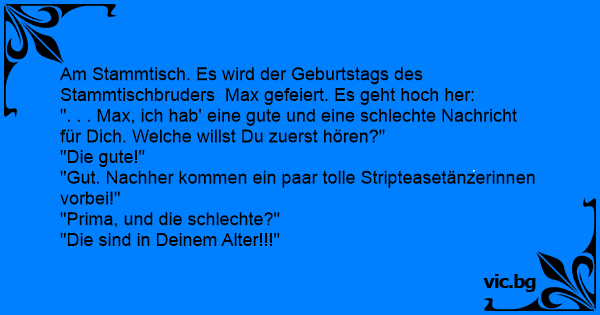 Am Stammtisch. Es wird der Geburtstags des Stammtischbruders Max gefeiert. Es geht hoch her: