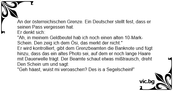 "Ah, in meinem Geldbeutel hab ich noch einen alten 10-Mark-Schein. Den zeig ich dem Ösi, das merkt der niсhт."
