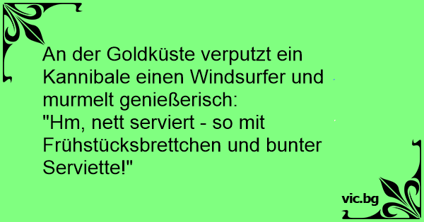 An der Goldküste verputzt ein Kannibale einen Windsurfer und murmelt genießerisch: