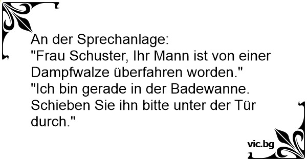 "Frau Schuster, Ihr Mann ist von einer Dampfwalze überfahren worden."