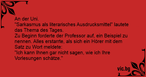 Zu Beginn forderte der Professor auf, ein Beispiel zu nennen. Alles erstarrte, als sich ein Hörer mit dem Satz zu Wort meldete: