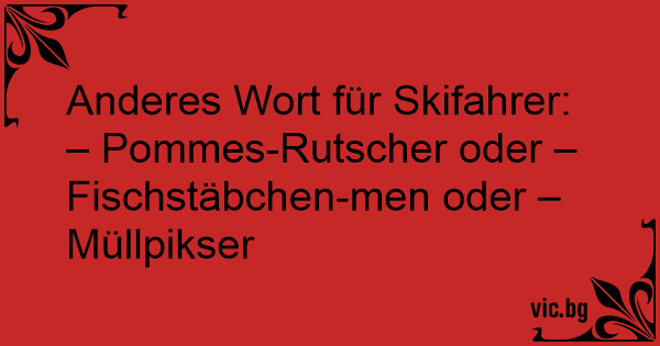 Anderes Wort für Skifahrer: – Pommes-Rutscher oder – Fischstäbchen-men oder – Müllpikser