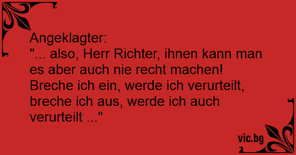 "... also, Herr Richter, ihnen kann man es aber auch nie recht machen! Breche ich ein, werde ich verurteilt, breche ich aus, werde ich auch verurteilt ..."