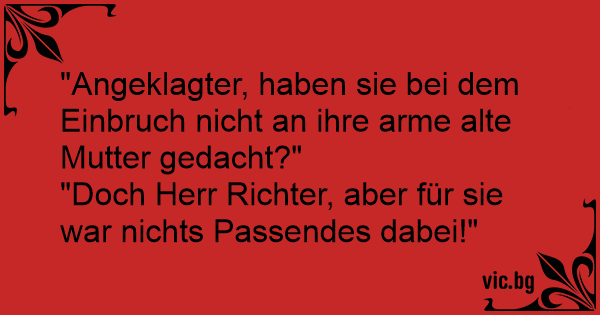 "Angeklagter, haben sie bei dem Einbruch niсhт an ihre arme alte Mutter gedacht?"