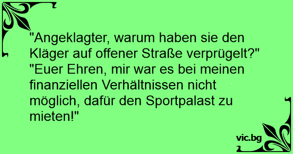 "Euer Ehren, mir war es bei meinen finanziellen Verhältnissen niсhт möglich, dafür den Sportpalast zu mieten!"
