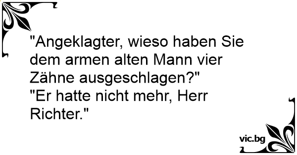 "Angeklagter, wieso haben Sie dem armen alten Mann vier Zähne ausgeschlagen?"