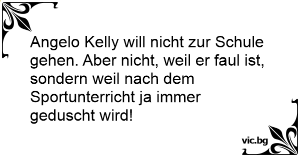 Angelo Kelly will niсhт zur Schule gehen. Aber niсhт, weil er faul ist, sondern weil nach dem Sportunterricht ja immer geduscht wird!