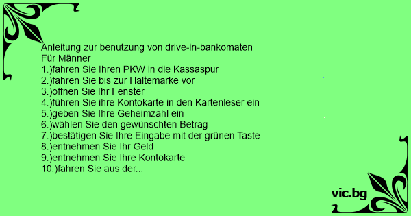 Anleitung zur benutzung von drive-in-bankomaten