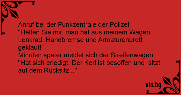 "Hat sich erledigt. Der Kerl ist besoffen und sitzt auf dem Rücksitz..."