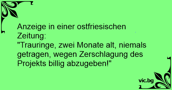 "Trauringe, zwei Monate alt, niemals getragen, wegen Zerschlagung des Projekts billig abzugeben!"