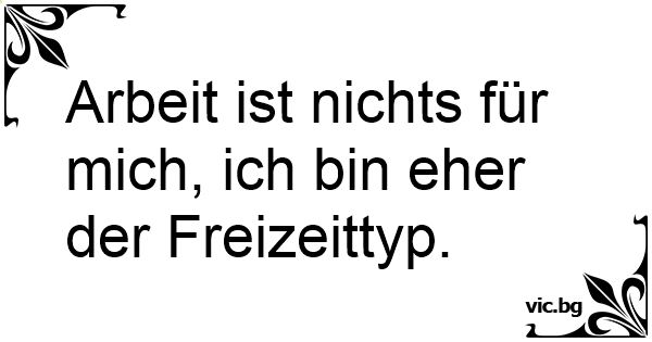 Arbeit ist nichts für mich, ich bin eher der Freizeittyp.