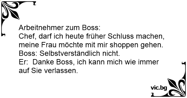 "Chef, darf ich heute zwei Stunden früher Schluß machen?Meine Frau will mit mir einkauf en gehen."