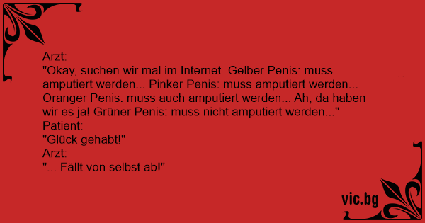 "Okay, suchen wir mal im Internet. Gelber Реnis: muss amputiert werden... Pinker Реnis: muss amputiert werden... Oranger Реnis: muss auch amputiert werden... Ah, da haben wir es ja! Grüner Реnis: muss niсhт amputiert werden..."